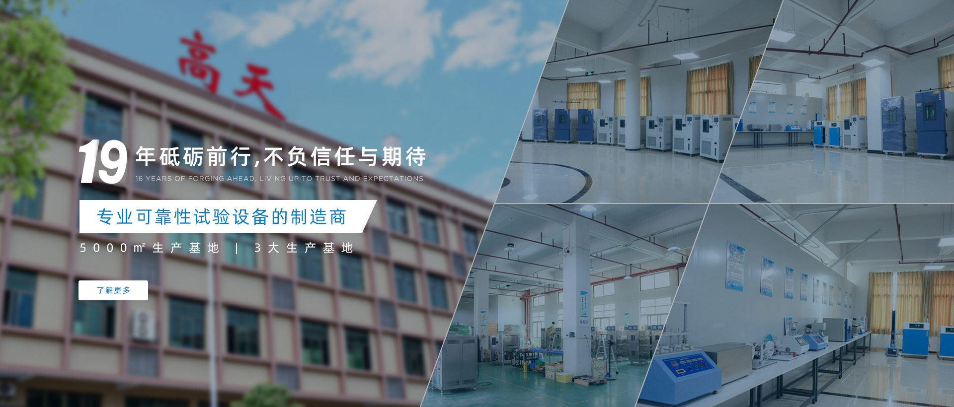 東莞市高天試驗(yàn)設(shè)備有限公司是一家可靠性試驗(yàn)設(shè)備的制造商,我們專注于可靠性試驗(yàn)已有19余年,在此期間,我們竭盡所能,努力為客戶提供完善的實(shí)驗(yàn)室規(guī)劃方案,匹配質(zhì)優(yōu)價(jià)廉的試驗(yàn)設(shè)備。高天擁有完整的研發(fā)團(tuán)隊(duì),其中有很多人都躋身試驗(yàn)設(shè)備行業(yè)多年,能為顧客提供完善的技術(shù)方案,以幫助廣大客戶在確保其產(chǎn)品品質(zhì)的前提下,有效降低經(jīng)營(yíng)成本,提升經(jīng)營(yíng)競(jìng)爭(zhēng)優(yōu)勢(shì)。高天生產(chǎn)的設(shè)備種類眾多,同時(shí)擁有實(shí)用新型專利證書,銷售范圍覆蓋全國(guó)。公司自成立以來堅(jiān)決以精美的外觀設(shè)計(jì),認(rèn)真務(wù)實(shí)的工作精神,良好周到的后續(xù)服務(wù),贏得了客戶良好的口碑。我們將一如既往,堅(jiān)持以“誠(chéng)信經(jīng)營(yíng)”為...